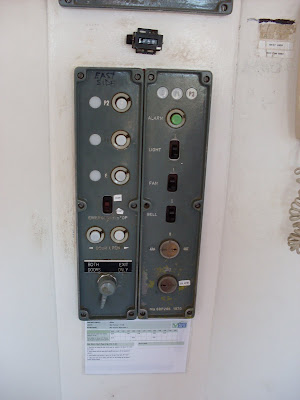 The elevator itself is triangle shaped and is almost completely covered in windows. The only “wall space” is this area is about four feet wide and contains the controls. I remember staring at this every time I’ve been on this elevator since