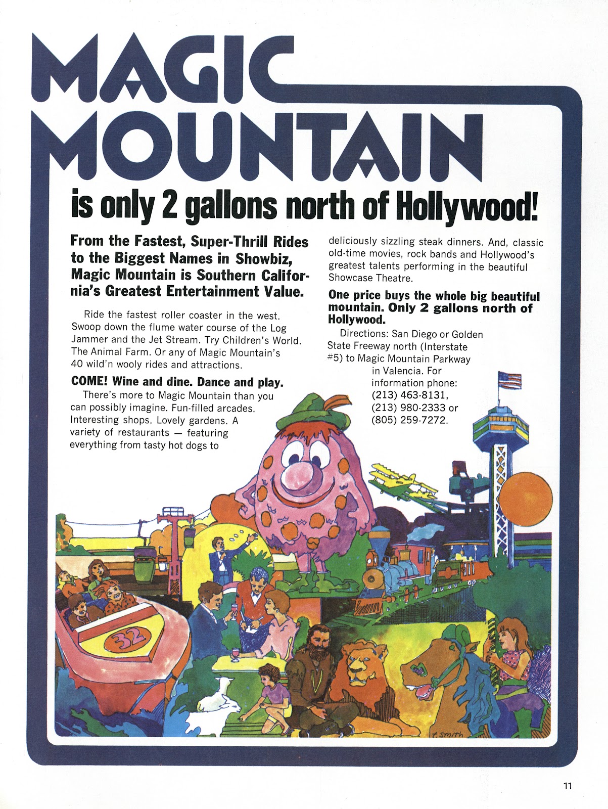 This was taken from the top of the hill, most likely from the base of the tower. This shot is impossible to get today, besides being covered in trees, there's two roller coasters in the way; Revolution and Tatsu. Fortunately there are a couple closeups from down below, let's check them out.