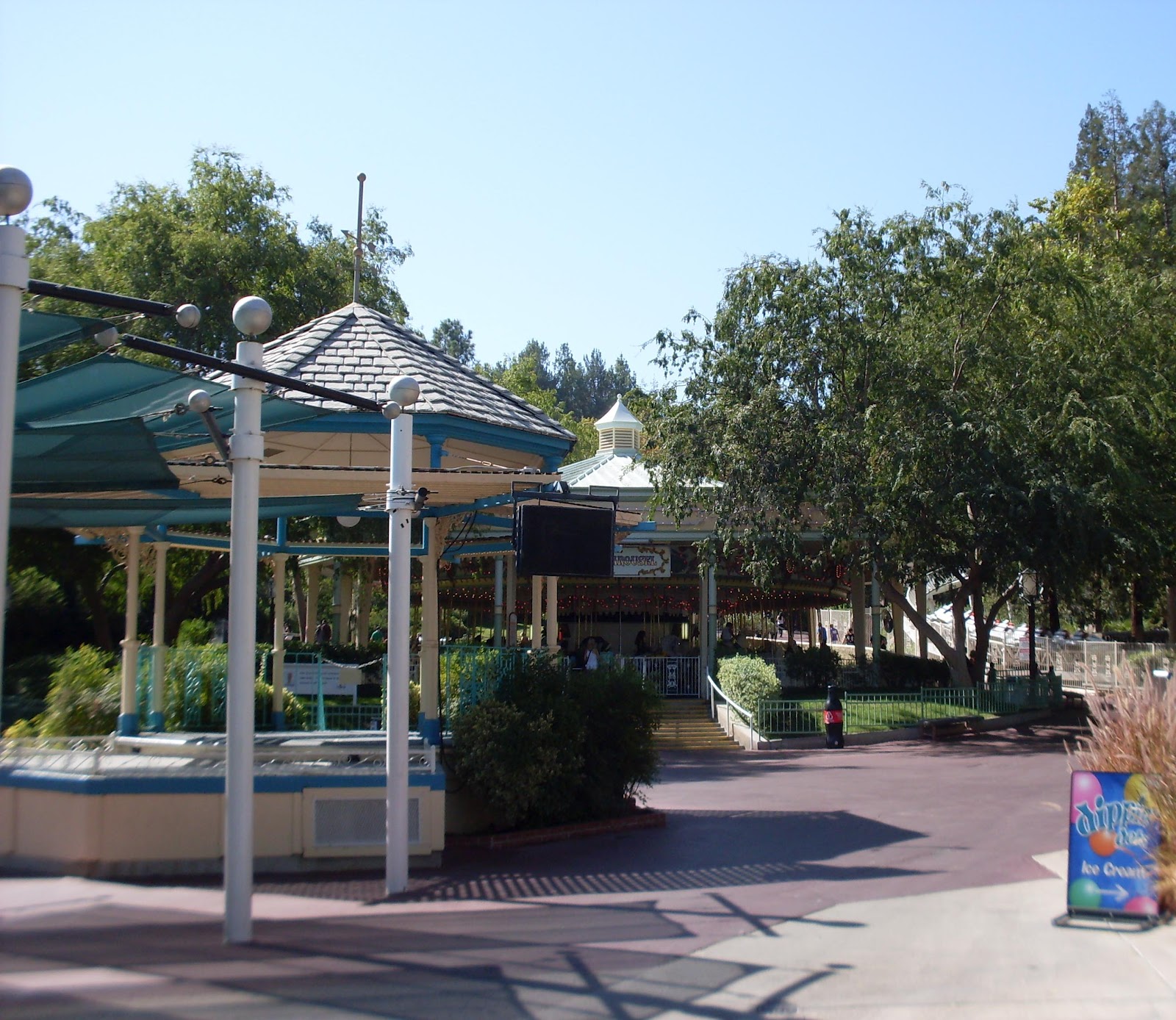 Here we've got a nice view of the "Grand Carousel" and "The Gazebo" later to become the "Carousel Bandstand". Where's Revolution, X2, Viper and Tatsu?