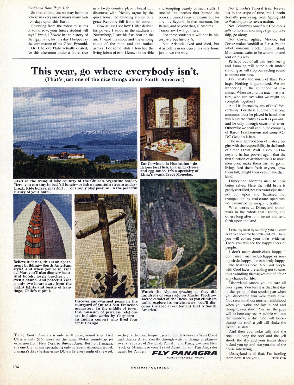 Welcome to Magazine Monday. Today we've got a nice treat, I love these large format vintage magazines, the advertisements alone are amazing (as you'll see). This "Holiday" Magazine from October 1965 has an excellent Disneyland article written by science fiction author Ray Bradbury.